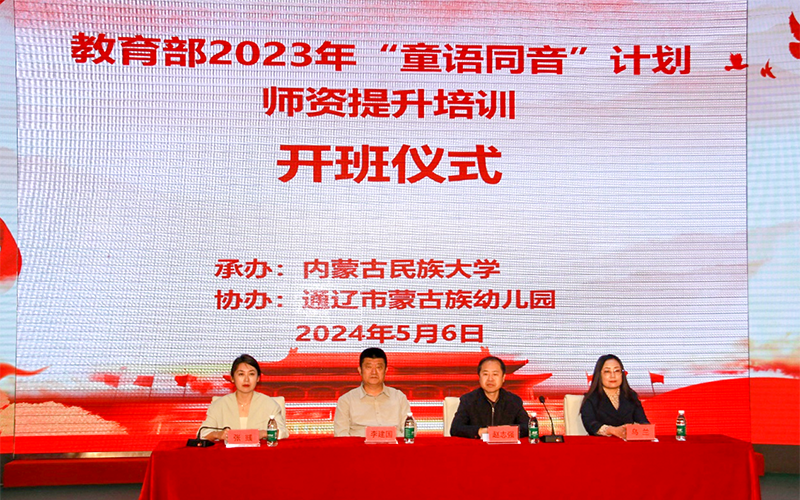5月6日上午,通辽市蒙古族幼儿园举办了兴安盟扎赉特旗和科右中旗幼儿园教师跟岗研修开班仪式。内蒙古民族大学继续教育中心、通辽市蒙古族幼儿园负责同志以及来自兴安盟扎赉特旗和科右中旗农村牧区34名幼儿园教师参加了培训。内蒙古民族大学继续教育中心副主任赵志强、通辽市蒙古族幼儿园党总支书记李建国、园长乌兰、副园长张彧出席开班仪式。开班仪上,赵志强代表内蒙古民族大学,对参训学员提出三点希望:要认真学习,深刻领会本次培训的重要意义;要坚持问题导向,积极参加培训交流;要遵守培训纪律,展现良好学习风貌。张彧表示,幼儿园将以此活动为契机,示范引领,服务地方学前教育事业更好地发展。培训由开班仪式、专家讲座、经验分享、精品课观摩和绘本剧展演等教研活动组成。