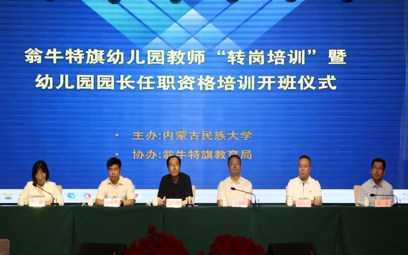 6月12日上午,由我校主办,翁牛特旗教育局协办的赤峰市翁牛特旗幼儿园教师转岗培训暨幼儿园园长任职资格培训班在赤峰市翁牛特旗顺利开班。我校继续教育中心主任王亮、马克思主义学院党委书记田宗会、教育科学学院党委书记刘额尔敦吐、党政办公室副主任王金双、翁牛特旗教育局局长温志刚出席开班仪式。开班仪式由翁牛特旗教育局副局长张敏主持。