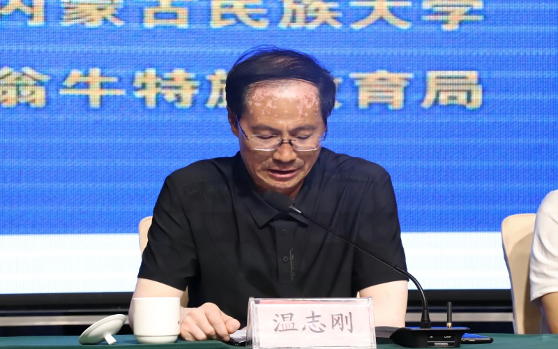 温志刚代表翁牛特旗教育系统对我校的到来表示欢迎。他介绍了本次培训的目的和意义,并对学员提出四点要求:一是要专注学习,拔节而上;二是要学以致用,活学活用;三是要加强互动,示范引领;四是要依规守纪,安心培训。