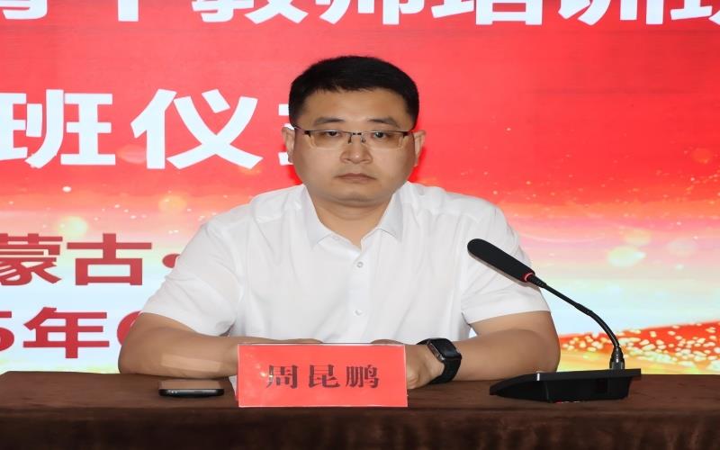 周昆鹏详细介绍了物理学科培训方案。继续教育中心培训科科长李文颖宣读“学员管理规定”。通辽市蒙古族中学物理教师郎红云代表参训学员作表态发言。